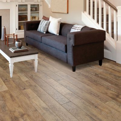 Select surfaces driftwood flooring has the look and feel of real hardwood with the added durability of a laminate floor.